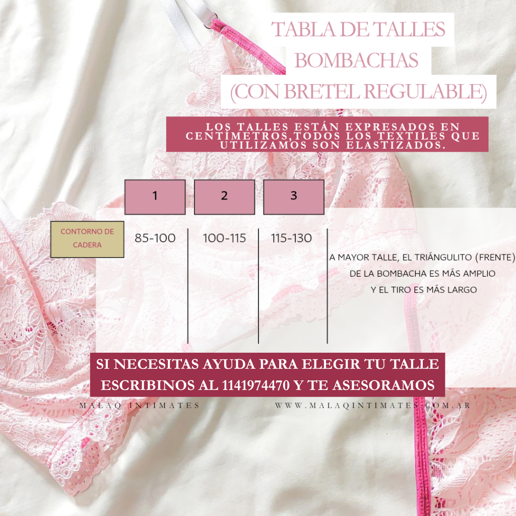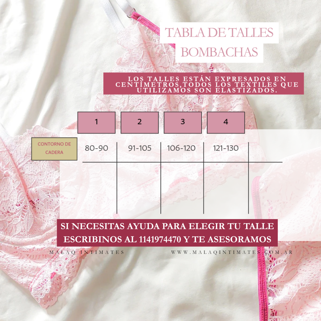 GUÍA DE TALLES PARA BOMBACHAS SIN BRETELES: