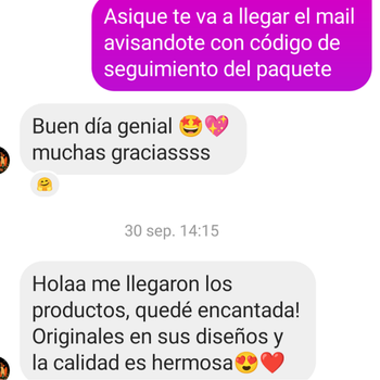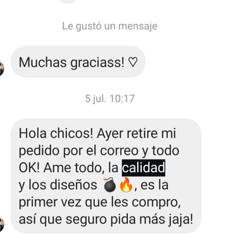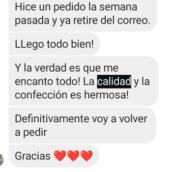 Estos son algunos de los mensajitos que nos hicieron llegar nuestras clientas despues de recibir su compra 😍